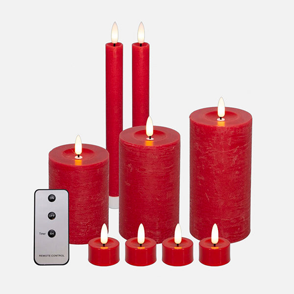 LED-ljus med realistisk 3D-låga och fjärrkontroll 10 delar - Röd